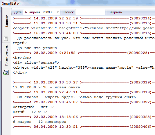 Какое-то время я спасался простым, но достаточно эффективным сервисом SmartBat из почтового клиента The Bat!. Там в SmartBat есть раздел "Записи", где на одну "простыню" бесконечной лентой пишутся любые заметки, которые SmartBat сам отделяет друг от друга строкой с датой и временем заметки.