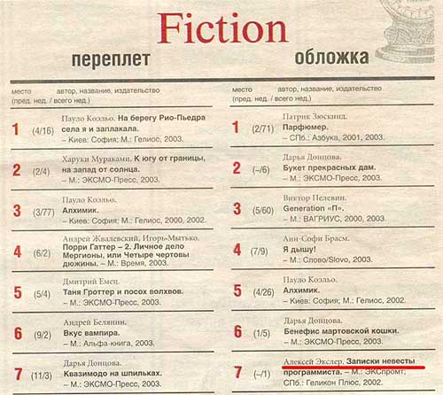 Кстати, и в первых изданиях (издательства "Экспромт") как раз именно эта книга лучше всего продавалась. Хотя "Записки невесты программиста" ухитрились попасть в топовый рейтинг "Книжного обозрения"...