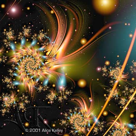Усвоили? Что именно усвоили? Что фракталы позволяют получать всякие красивые штучки-дрючки? Все правильно. Это именно так и есть. Поэтому отправляемся смотреть эти штучки-дрючки на сайт, например, Элиса Келли. Старик Элис такое вытворяет с этими фракталами, что башка может поплыть безо всякого алкоголя. Вот, например, посмотрите, какая красота: