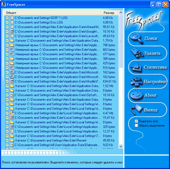 Программка называется FreeSpacer. Она бесплатна, а предназначена для того, чтобы чистить жесткий диск вашего компьютера от всяких ненужных файлов: темпов, устаревших логов, страховочных копий (bak), неверных ярлыков и так далее и тому подобное.