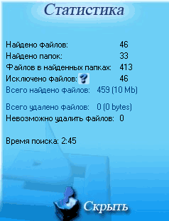Ну и далее нажимаете кнопку "Поиск", после чего программа через некоторое время выдаст соответствующий список найденного мусора: