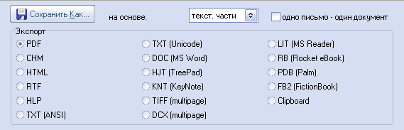 Форматы, в которые можно экспортировать письма, впечатляют:
