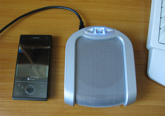 DUET Speakerphone. Слева для сравнения размеров лежит HTC Diamond