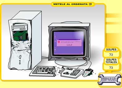 Весьма расслабляющая игрушечка. Там по-испански, но понимание необязательно. Сначала вам покажут традиционно возникающую ошибку, а затем дадут возможность подубасить этот чертов компьютер к чертовой матери. Причем не просто подубасить, а раздолбасить его вдребезги. Хорошая такая игрушечка. Душевная и оттягивающая.