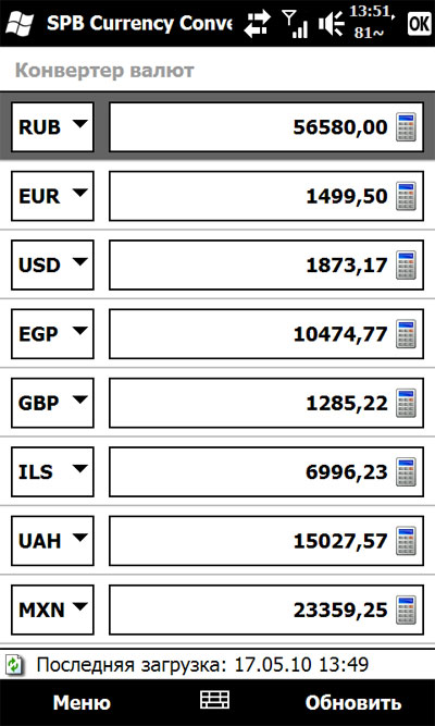 А вот валютный конвертер там, на мой взгляд, сделан не особо удобно. Мне из этой серии больше всего нравится соответствующая утилита из SPB Traveler. И удобно, и наглядно, и мобильно - я только ею теперь и пользуюсь.