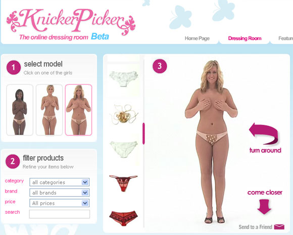 Онлайновые интернет-магазины становятся все более и более продвинутыми и нынче предоставляют такой сервис, что хоть стой, хоть раздевайся. Впрочем, нередко раздеваются и на самих интернет-магазинах, как это сделано, например, на сайте KnickerPicker. Магазинчик продает красивое женское белье, а как его можно покупать, не представив, как оно в реальности выглядит на реальных попках-грудках? Ну так и посмотрите, нет проблем! Для этой цели в магазинчике постоянно присутствуют три манекенщицы: худосочная, обычная и дама, что называется, в теле.