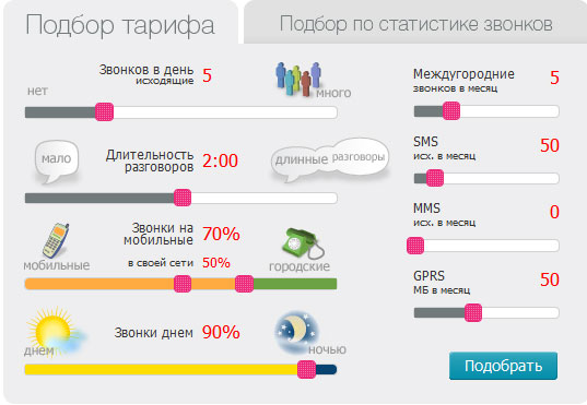 Вот подбор тарифа. Формочка наглядная и удобная.