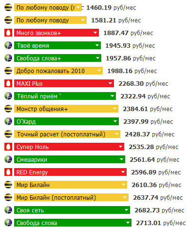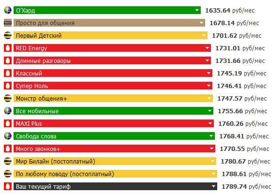 Выставляете примерные параметры ваших разговоров и - вперед. В результатах выдачи можете убрать ненужные тарифы (например, прямой и корпоративный) и оставить только желаемых операторов (их четыре - "МТС", "Билайн", "Мегафон", TELE2).