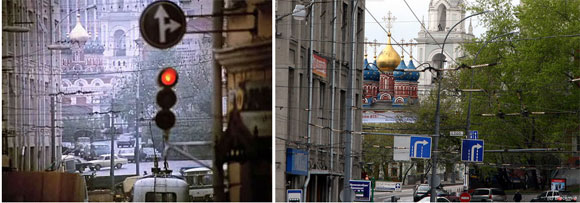 В Интернете много кто занимается сопоставлением кадров из старых фильмов с современными фотографиями. Вот очень хорошая подборка по "Служебному роману": первая часть, дом Калугиной, третья часть. Очень интересно сравнить то, что было и что стало.