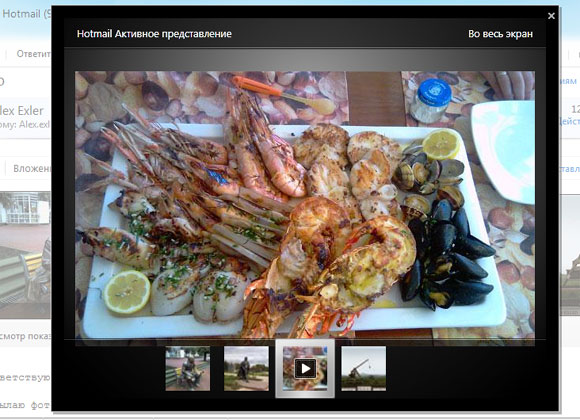 Изображения, приложенные к письму, теперь просматриваются очень и очень удобно. Предпросмотр дается в виде скроллируемой линейки с уменьшенными изображениями.