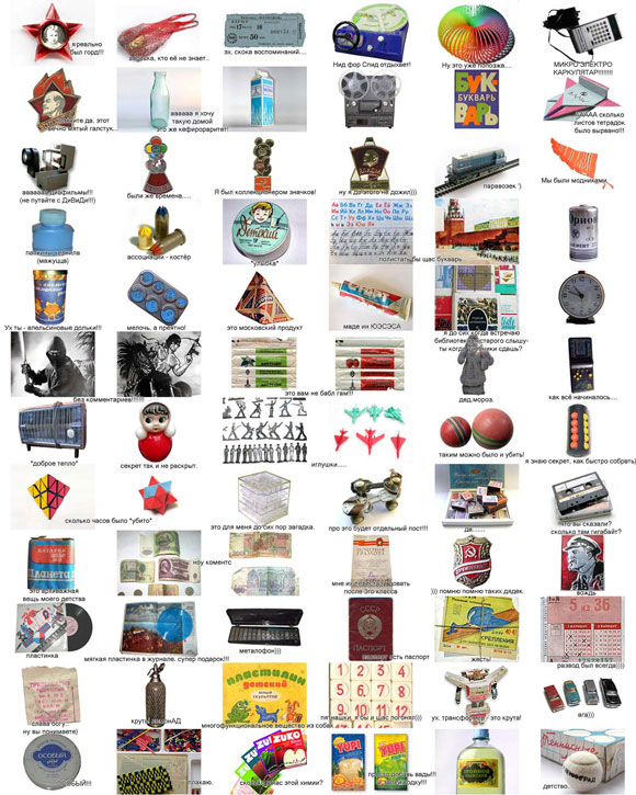 Здоровенная картинка с коллекцией всяких предметов советских времен. Жалко только, что комментарии к этим предметам писал какой-то малограмотный баклан...