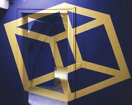 Полоса проходила через фронтальную стену, дверной проем, стену за проемом, стену в торце и возвращалась через проем на фронтальную стену. В результате возникала четкая иллюзия того, что полоса просто перекрывает дверной проем, - выглядело это очень забавно. И тогда Феличе решил посвятить этим развлечениям всю свою жизнь.