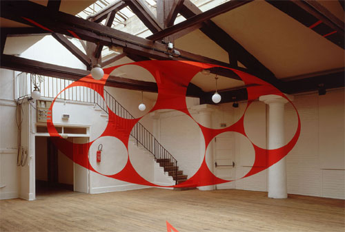Felicе Varini - художник, которого в прямом смысле слова можно назвать мастером иллюзий и творцом перспективы. Рисует он не на холстах, нет! Холсты и бумага - не его масштаб. Феличе рисует различные простые геометрические фигуры - линии, круги, окружности, треугольники и так далее - на стенах помещений и зданий, причем рисует так, что при разглядывании их с определенной точки перед вами возникает совершенно неожиданный визуальный эффект: перспектива искажается и вы начинаете видеть предметы, как будто возникающие в воздухе, либо же элементы интерьера или зданий неожиданным и пугающим образом искажаются - все по вине этого весьма оригинального хулигана от искусства.
