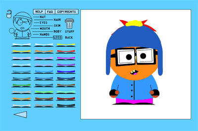 Игра "Создай для себя героя "Саут-парка". Конструктор, с помощью которого вы можете создать собственного персонажа этого знаменитого мультсериала. Впрочем, особым разнообразием конструктор не отличается, но аватар или юзерпик себе сотворить вполне можно.