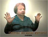 Переходим к практическим занятиям. Официальный сайт ВАЛЕНТИНЫ АНИСИМОВНЫ ХРУСТАЛЁВОЙ. Это "Ванга из Химок" (так называется статья из научной газеты "Жизнь"), писатель-философ, физик-лирик и Народный Целитель. Совсем недавно Валентина Анисимовна полностью разгадала тайны Вселенной. Причем сразу все. Правда, она не рассказала, откуда в конфетах-подушечках берется повидло, однако окинула своим всевидящим оком намного более крупные механизмы. Из ее откровений мы узнали, цитирую