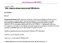 Очень полезная статья из PC-Magazine/RE. Называется "104 совета пользователям Windows". Там приводится масса действительно полезных советов пользователям Windows XP, рассказывается о некоторых недокументированных возможностях, комментируются некоторые особенности и выдаются некоторые секреты. Причем все это очень кратко и сжато, но кому нужно - тот поймет с полуслова. Рекомендую.