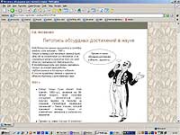 "Музыкальный сайт года" - Захар Май online. Я не очень понял, почему именно он и почему музыкальный сайт (я долго пытался там найти музыку, но так и не нашел), однако жюри, вероятно, виднее. На то оно и жюри... О, нашел! На морде есть не сильно заметный линк - http://baza.com/audio. Там во вполне неудобной форме можно найти MP3 с произведениями, как я понял, Захара Мая. Как мне сообщили в жюри, конкурс выиграл не столько данный сайт, сколько сам Захар Май, цитирую, "со своим всепосылающим вторжением на музыкальную российскую сцену".