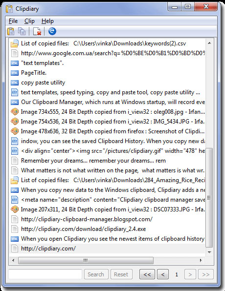 В одном из прошлых обзоров я рассказывал о менеджере буфера обмена Ditto. После этого мне прислали ссылку на еще один бесплатный менеджер буфера обмена - Clipdiary. Мне он понравился больше, чем Ditto, я теперь его и использую. Программа сохраняет в буфере обмена различные данные (включая картинки), по редактируемому хоткею их показывает, позволяет выбрать все что нужно, вставить или заново скопировать в буфер.
