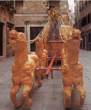 Захотелось Ливио прокатиться на четверке гнедых, запряженных упряжкою, - тоже нет проблем! Берем бревнышко побольше и вырезаем весь комплект, включая карету!