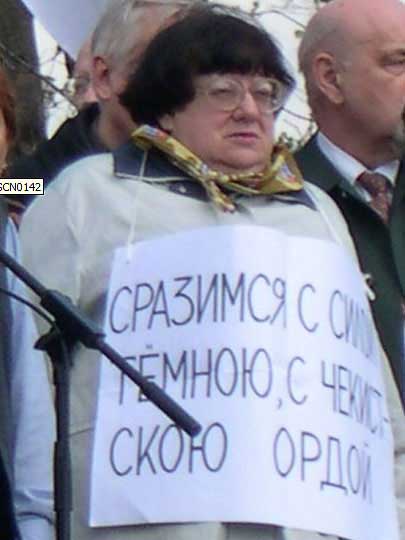 На этот раз в сети спецов с Dirty.ru попала наша милейшая, хотя и заметно крейзанутая борчиха со всевозможными антинародными, народными и гипернародными режимами - Валерия Ильинична Новодворская, собственной персоною! В качестве базовой послужила фотография, на которой Валерия Ильинична с большим плакатом стоит на трибуне рядом с мужиком, подозрительно смахивающим на Ленина.