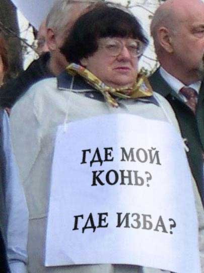 Что из этого сотворили на Dirty.ru - смотреть здесь. Смотреть и плакать, плакать и смотреть... Основной темой для измывательств, конечно, был плакат, висящий на теле пламенной демократши! Надписи были как сентиментальные: