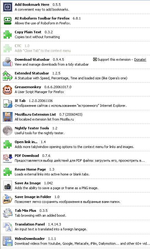 Кстати, в письмах много раз просили перечислить, какие расширения у меня установлены. Да пожалуйста, вот списочек.
