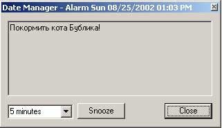 В процессе установки апдейтов для Windows 2000 мне было предложено скачать так называемый Date Manager - программу, которая устанавливается в system tray и позволяет вести простенький ежедневник с напоминаниями. Выглядит это вот так: