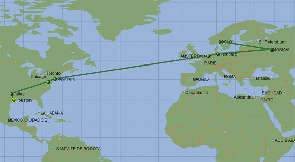 Вот, например, путь от моего компьютера до сервера из первого теста - всего-то 24 точки и океанчик: