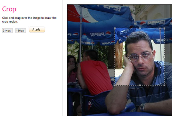 Нажимаем кнопку Crop и кадрируем фото. Причем слева Pixer услужливо показывает размер получаемого участка: