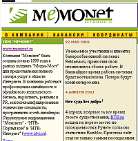 В онлайне те же газпромовские деятели забрали себе "Мемонет" и закрыли одно из лучших изданий о Сети - журнал "Интернет" (ссылку не даю, потому что она все равно переадресует на "НТВ-Плюс"). Правда, если быть точным, журнал был закрыт не газпромщиками, а самим Гусинским (которому до этого принадлежал "Мемонет"). Причем сделал он это самым некорректным и паскудным образом: просто перестал платить зарплату руководству журнала и гонорары авторам. Есть такой подленький способ: перестать платить, ожидая, когда вся эта мелкая сошка (с точки зрения владельца), типа, сама, в натуре, разбежится.