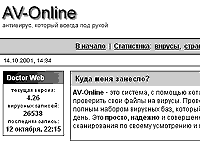 Вашему вниманию предлагается новый полезный сервис под названием AV-Online. Что это такое? Это система, с помощью которой можно проверить файлы на вирусы свежайшим комплектом Dr Web прямо в Интернете. Кроме того, вебмастера могут поставить себе на страничку простенький код на ява-скрипте (код вам вышлют с AV-Online после короткой регистрации), и посетители вашей странички смогут проверять файлы на вирусы прямо, как говорится, не отходя от кассы. Форма выглядит следующим образом (она полностью рабочая, и любой желающий может проверить файлы прямо из этого обзора):