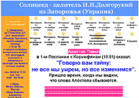 Сегодня мы познакомимся с уникальным человеком, иметь в мужьях которого тут же  согласилось бы огромное количество женщин - до того он неприхотлив в быту. Это Н. Н. Долгорукий из Запорожья, который два года назад вообще отказался от пищи и, цитирую с сайта, ест глазами лишь свет солнца. Главное блюдо диеты Долгорукого - космическая энергия, которую он запивает зеленым чаем, молоком, кипятком с медом или со специями для ухи. Как Долгорукий может пить специи для ухи - лично мне не очень понятно, но он, судя по всему, во всем выдающийся феномен!