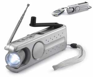 Или маленькая динамомашинка, которая питает встроенный фонарик, FM-радио и заодно может заряжать ваш мобильник: