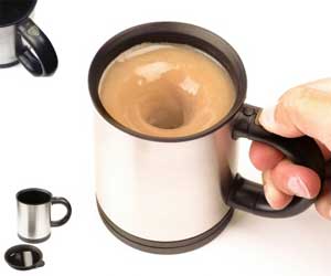 Или кружка, которая при нажатии кнопки на ручке сама перемешивает налитый в нее кофе со сливками: