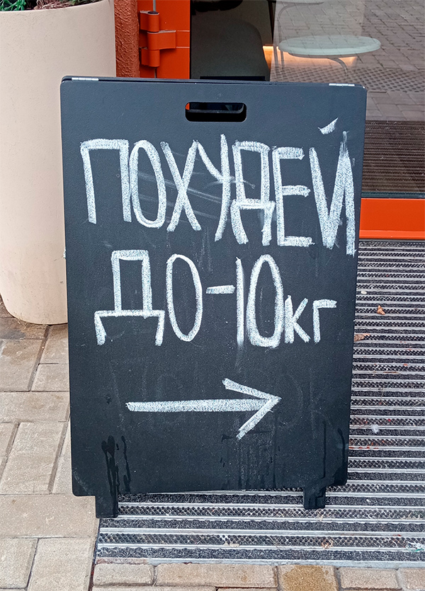 Как обычно, слово "похудей" опасно писать в публичных местах. ПыСы: оказывается, в РФ еще во всю существует Гербалайф.