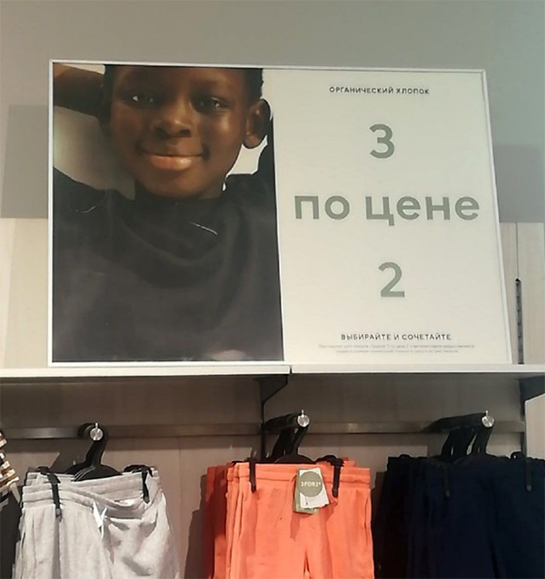 Что хотели сказать этим изображением, рекламируя изделия из органического хлопка? Это фото лучшего сборщика, что ли?
