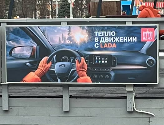 У Lada, вздыхает Хмарин, такие же креативщики, как и те люди, которые собирают эти ведра с болтами. На плакате, очевидно, машина едет в кювет, водитель держит подогреваемый руль руками в перчатках. В общем, как могли, так и накреативили.