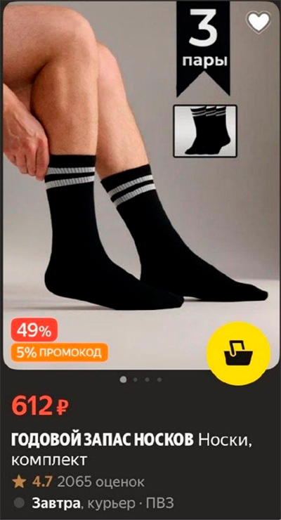 Слушайте, ну выгодно же - сразу купить годовой запас носков! Все три пары! Их носить не сносить!