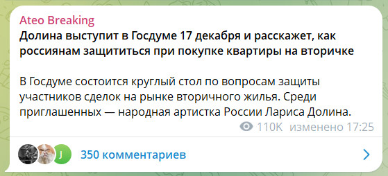 Вчера сообщили, что Долину пригласили принять участие в круглом столе в Госдуме для обсуждения проблемы участившихся случаев мошенничества со вторичным жильем, и это была новость не "Панорамы", а агентства ТАСС.