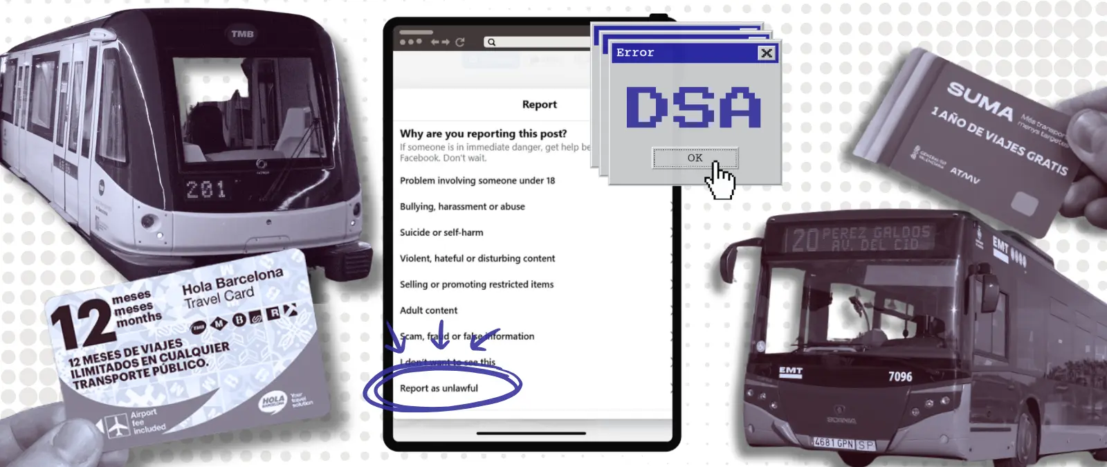 Обнаружив сеть мошеннических страниц в Facebook, выдающих себя за службы общественного транспорта в 47 испанских городах с целью кражи личных данных и данных кредитных карт пользователей, мы решили проверить механизмы подачи жалоб, которые такие платформы, как Meta, обязаны иметь в соответствии с Европейским законом о цифровых услугах (DSA), чтобы пользователи могли сообщать о наличии незаконного контента, который, опять же согласно тому же закону, должен быть удален. Мы сообщили о 58 незаконных публикациях, и, через неделю более 93% из них по-прежнему были доступны на Facebook.