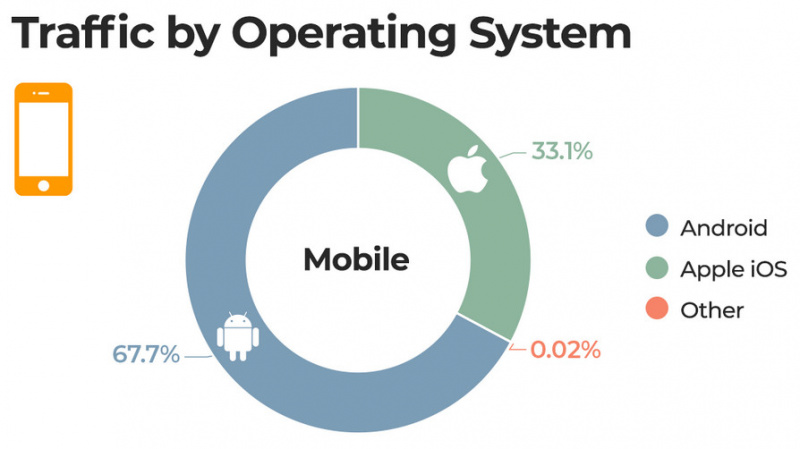 Также интересно было посмотреть статистику, не относящуюся к тематике сайта - распределение операционных систем и так далее. Ведь это один из самых посещаемых сайтов в мире, его аудитория оценивается в 3,5–4,1 млрд визитов в месяц. (Количество уникальных посетителей сервис не раскрывает.)