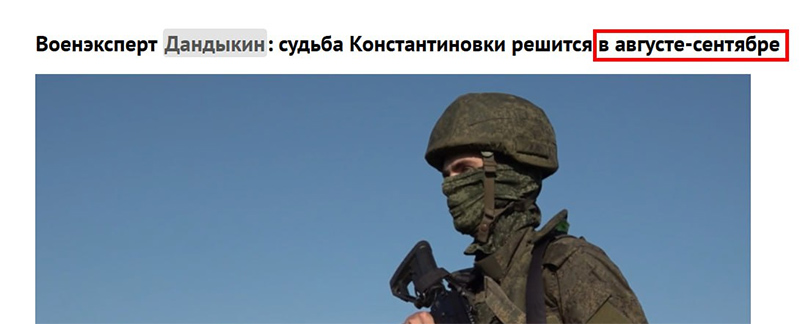 В ТГ "Военный осведомитель" внимательно следят за военным экспертом Дандыкиным и его предсказаниями о судьбе Константиновки. Получается очень забавно. Дандыкин, как эксперт, не теряет своей дандыкинской актуальности.