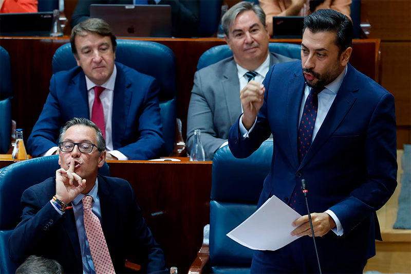 Пресс-секретарь PP Карлос Диас Паче и генеральный секретарь PP Мадрида Альфонсо Серрано в четверг. Хавьер Лизон (EFE)