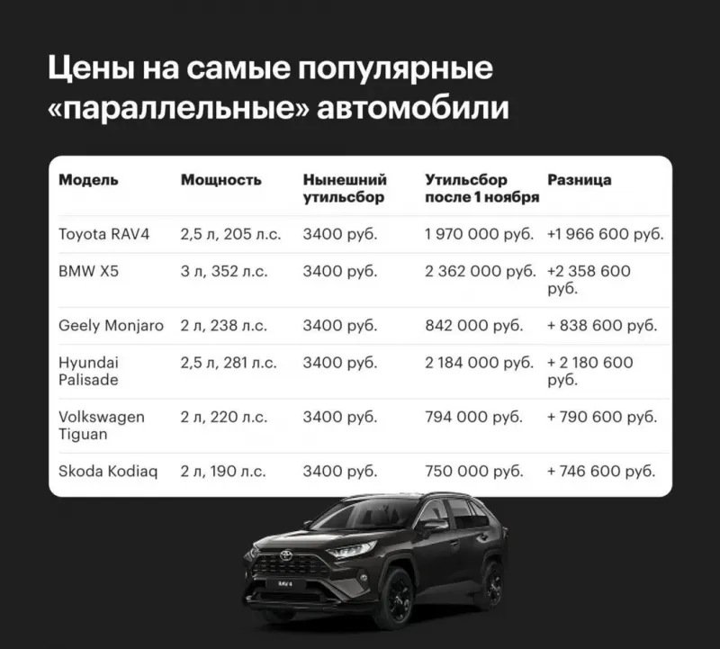 С 1 ноября 2025 года в России вступают новые правила расчёта утильсбора: его сумма будет зависеть не только от объёма двигателя, но и от мощности автомобиля. Для машин мощностью до 160 л.с. утильсбор будет прежний, а вот для более мощных машин он немножко увеличится. Ну, чтобы утилизация была более экологическая, мы же понимаем.
