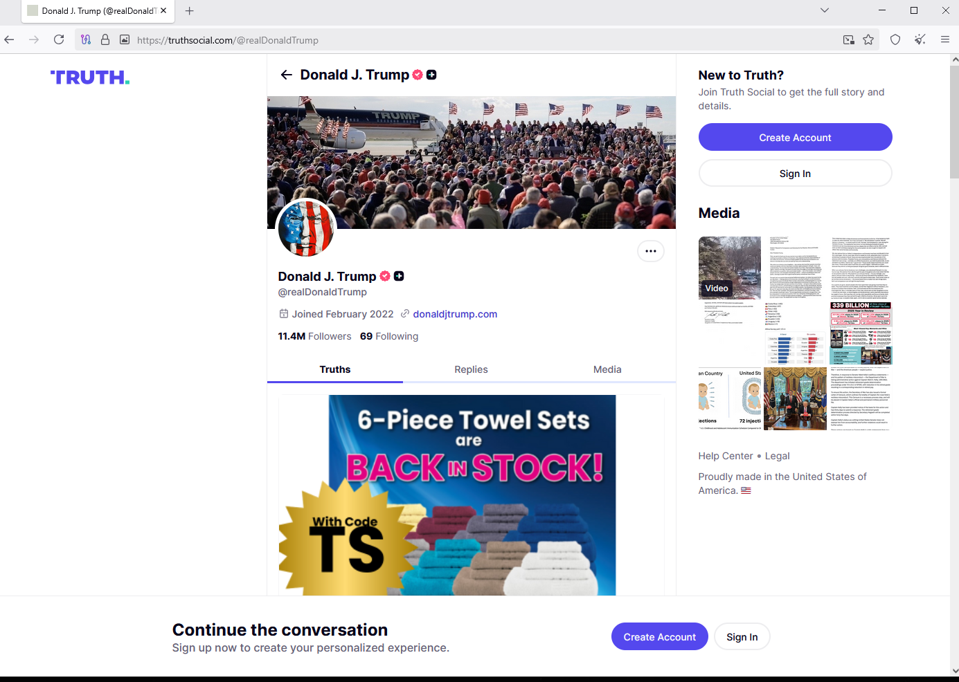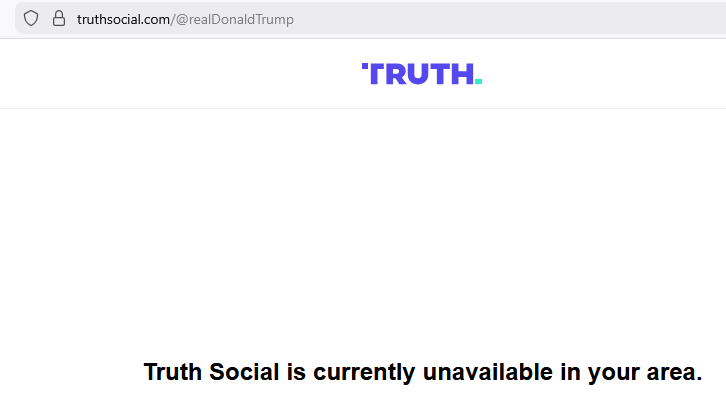 У меня эти социальные трусы (страница Трампа) третий день не открываются вообще никак. Пустая страница без какой-либо информации. Во всех браузерах, включая мобильные. Через домашнего провайдера, через мобильного провайдера, через JustESim.