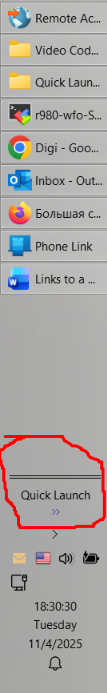 The Quick Launch toolbar will appear on the right side of your taskbar.
