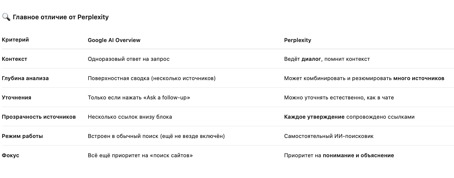 То есть как минимум в Перплексити есть поиск на натуральном языке и не надо учить синтаксис Гугла