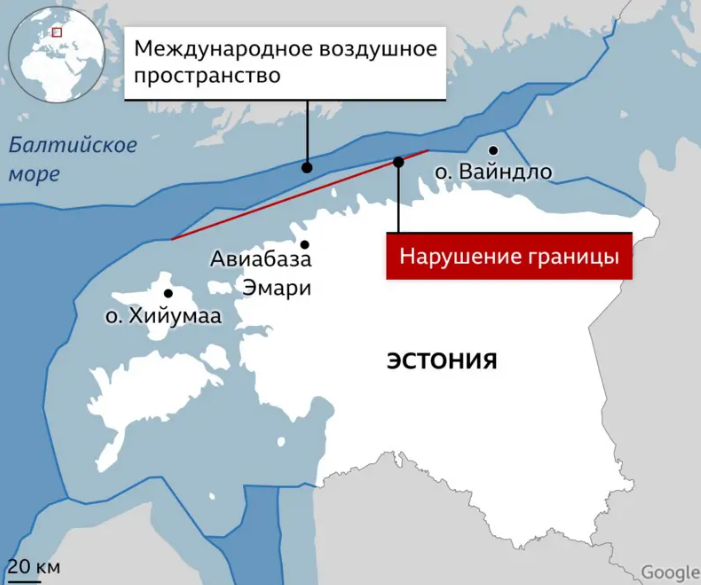 В случае с Эстонией это вообще был пролет над морской границей. Чтобы лучше это представлять, приаттачиваю карту.