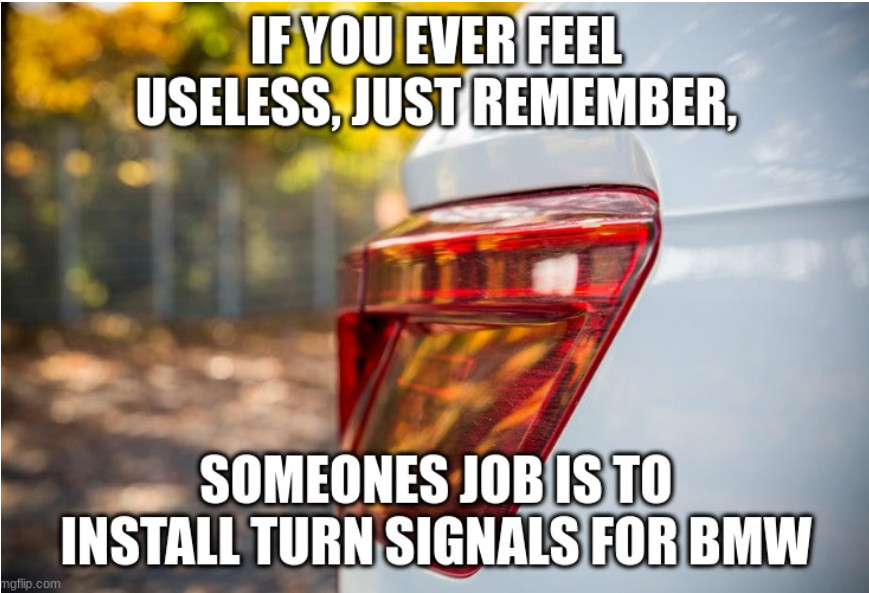 И да, даже БМВ показывают поворотники. Как-то я вобще мало вижу машин без поворотников, а я слежу. Возможно близость к заводу меняет характерный портрет пользователей.