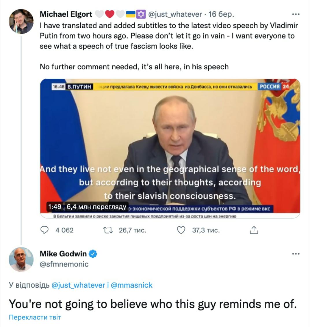 Даже сам Годвин заявил (еще в марте 22-го), что Закон Годвина в данном случае неприменим.